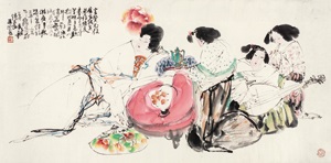 唐宮仕女図シリーズは唐代貴族の宮廷生活の研究に沢山の貴重な証明材料を提供してくれます 4五牛図 韓滉による五牛図は珍しい唐代絹絵の肉筆の一つであり今まで最も古い紙面中国絵画で中国の鎮国の宝と言われています.