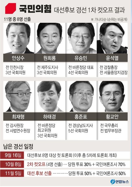 국민의힘 1차 컷오프 결과 윤석열 홍준표 유승민 등 8명 통과 시사저널