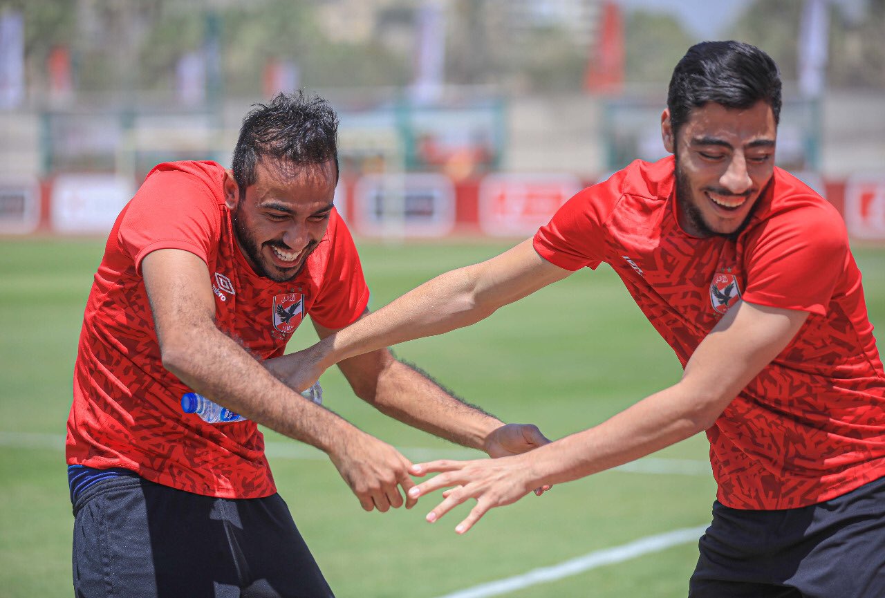 أكرم توفيق يشارك في تدريبات الأهلى بـ واقي الوجه تتويج نيوز