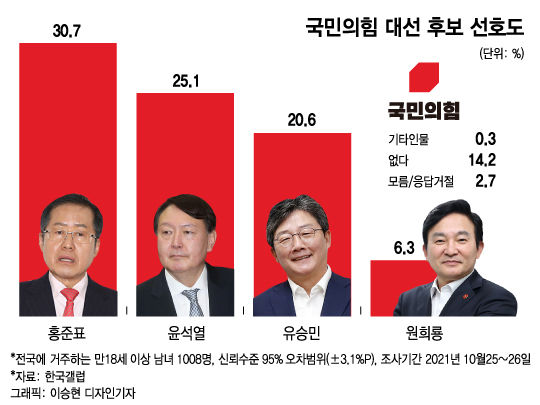 국민의힘 선호도 洪 30 7 Vs 尹 25 1 지지층선 尹이 과반 머니투데이